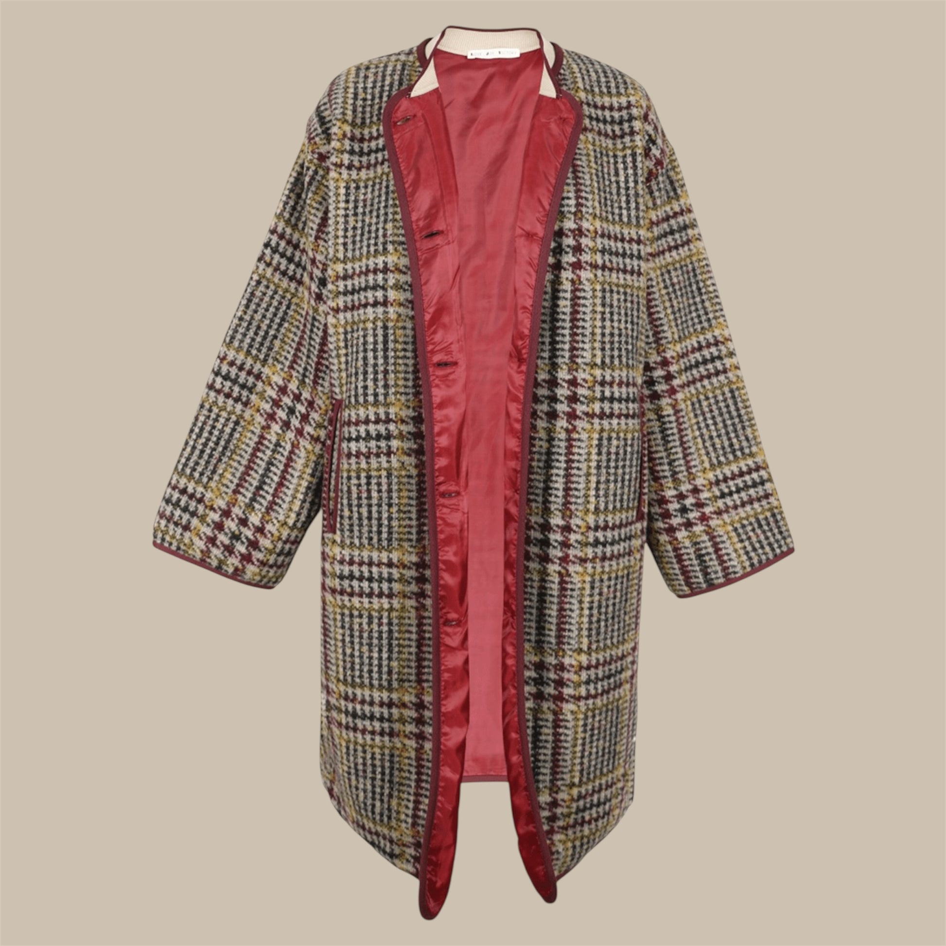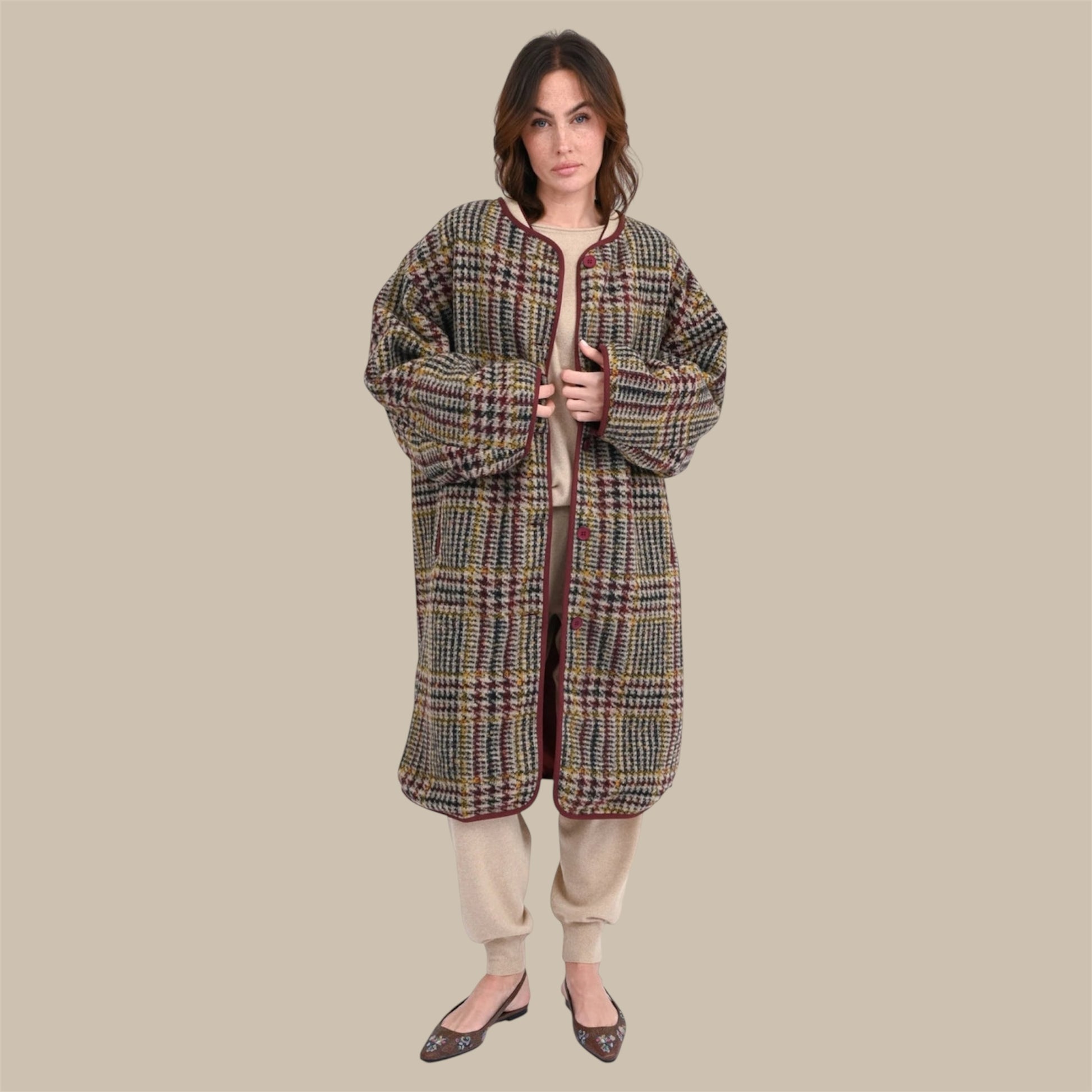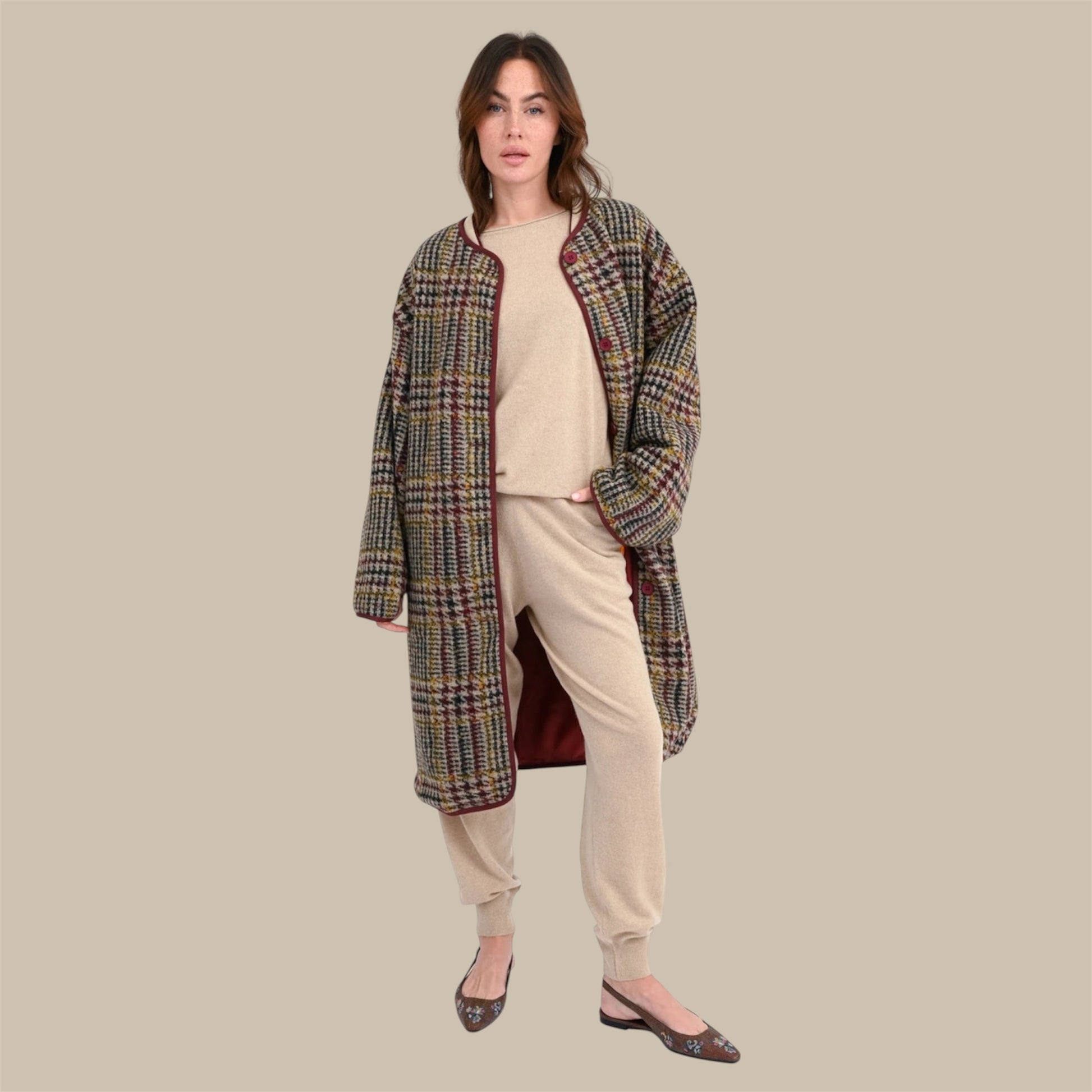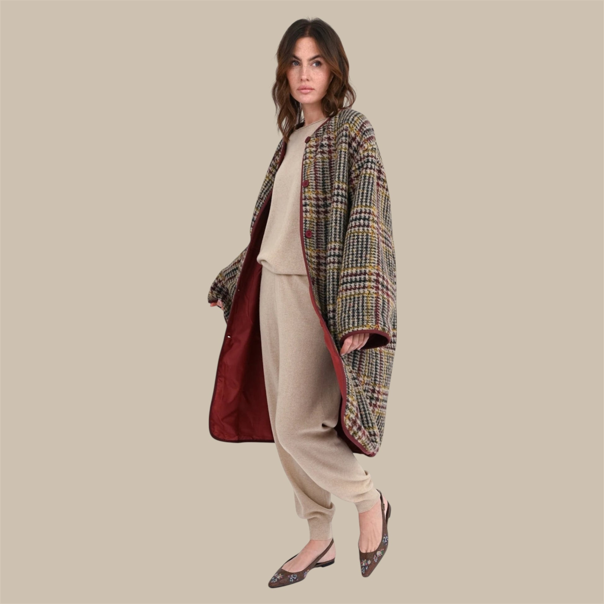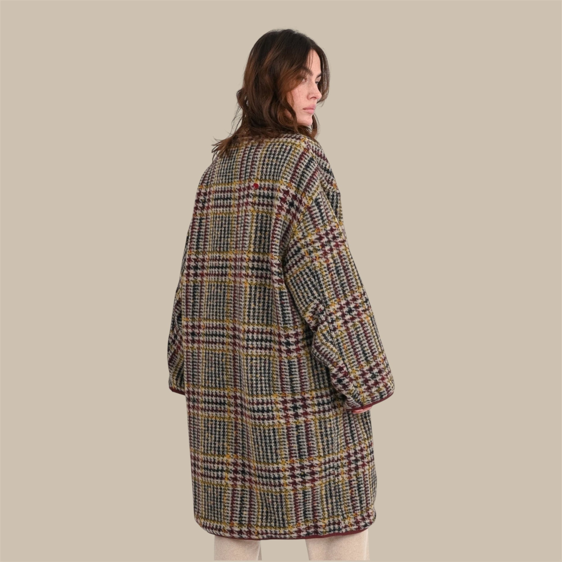 - Oversize-Mantel mit klassischem Hahnentritt- und Karomuster